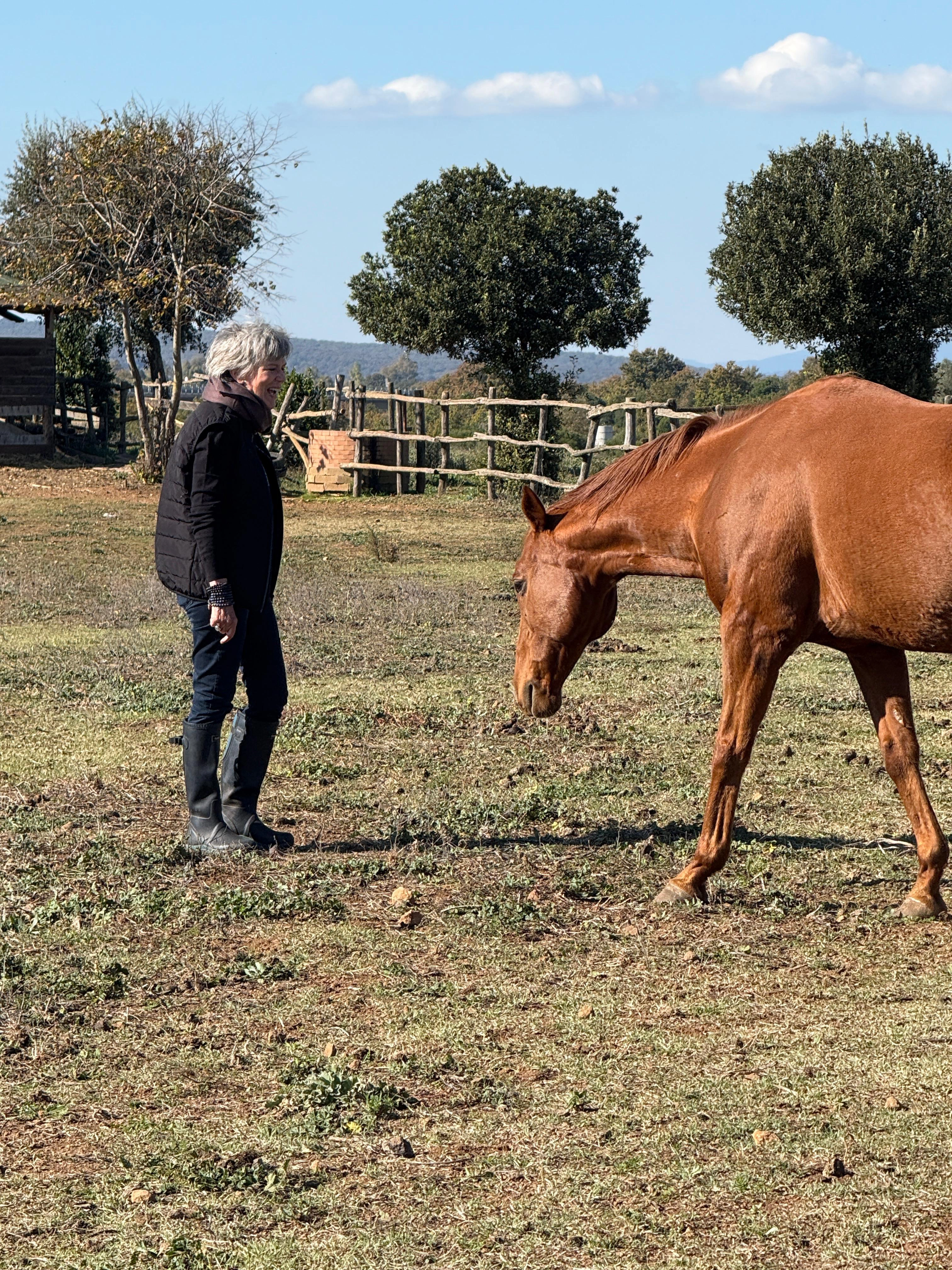 She is the author of A Mother’s Courage to Awaken and 24/7 Flow: Thrive Around the Clock. She leads retreats, workshops, and private sessions in the U.S. and internationally. She is a regular at Tenuta di Paternostro where she holds retreats, and small groups and individual sessions being with the horses.